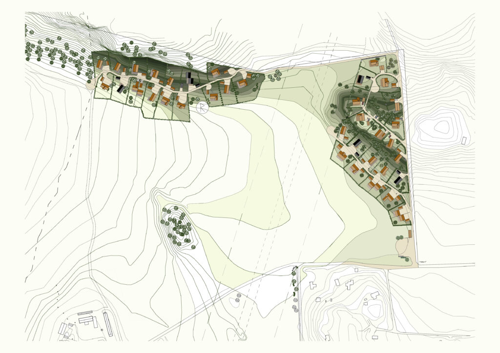 Ute på landsbygden i Grödinge planeras ett nytt bostadsområde för människor som vill leva naturnära men ändå ha stadens bekvämligheter nära. Bebyggelsen är tänkt att vara varierad i form och uttryck men inspirerad i material och skala av omgivande miljö. Husen ligger i en kuperad terräng i skogsbrynet och blickar ut över omgivande åkrar.