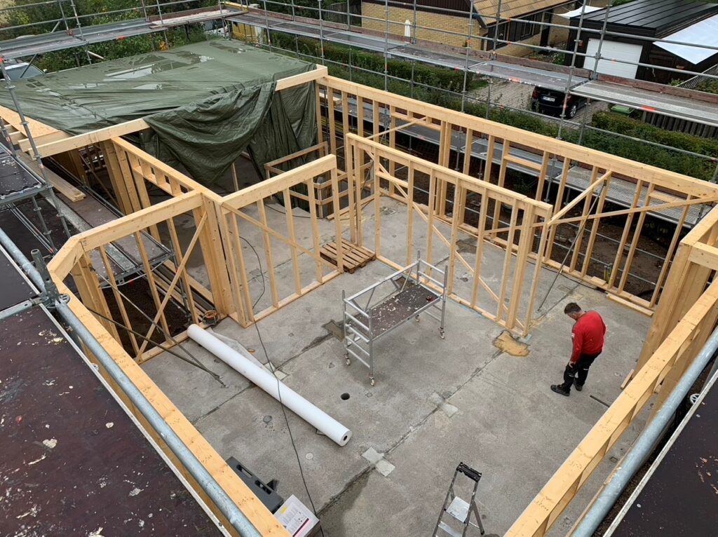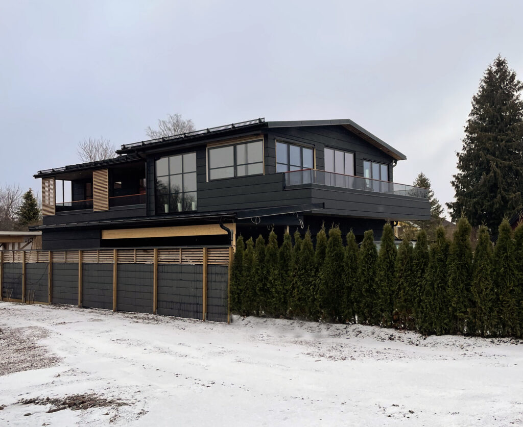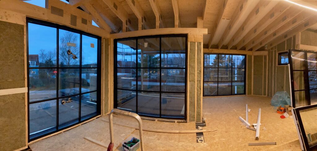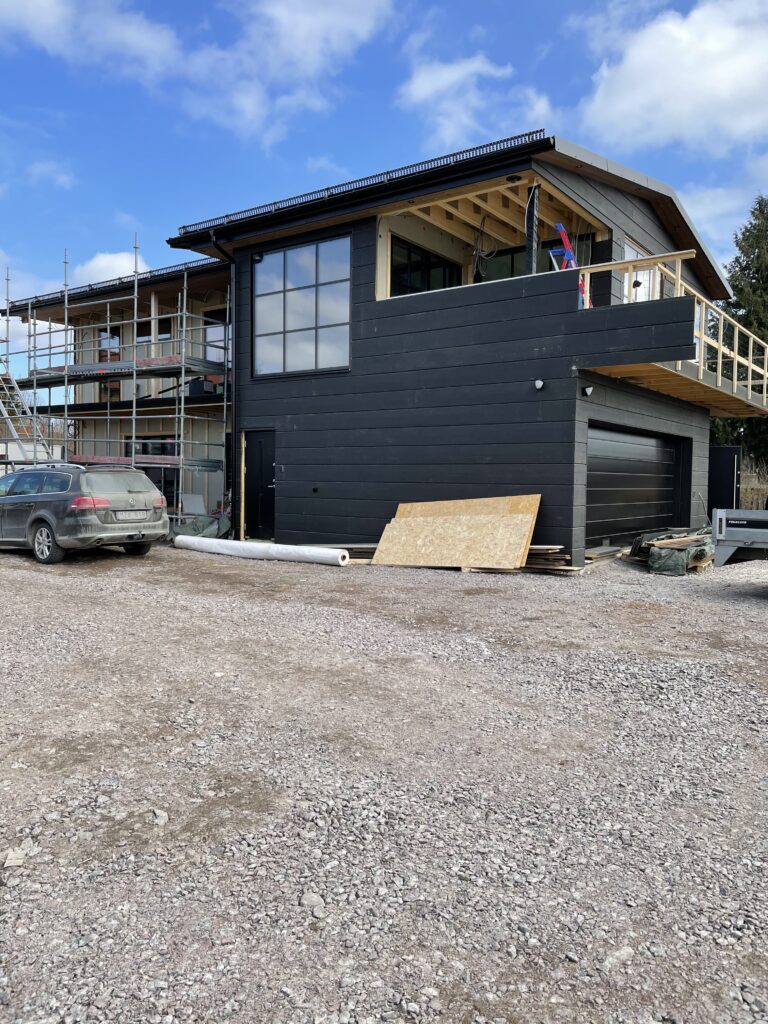 Enbostadshus åt familj i Uppland på en smal tomt i ett tättbyggt villaområde